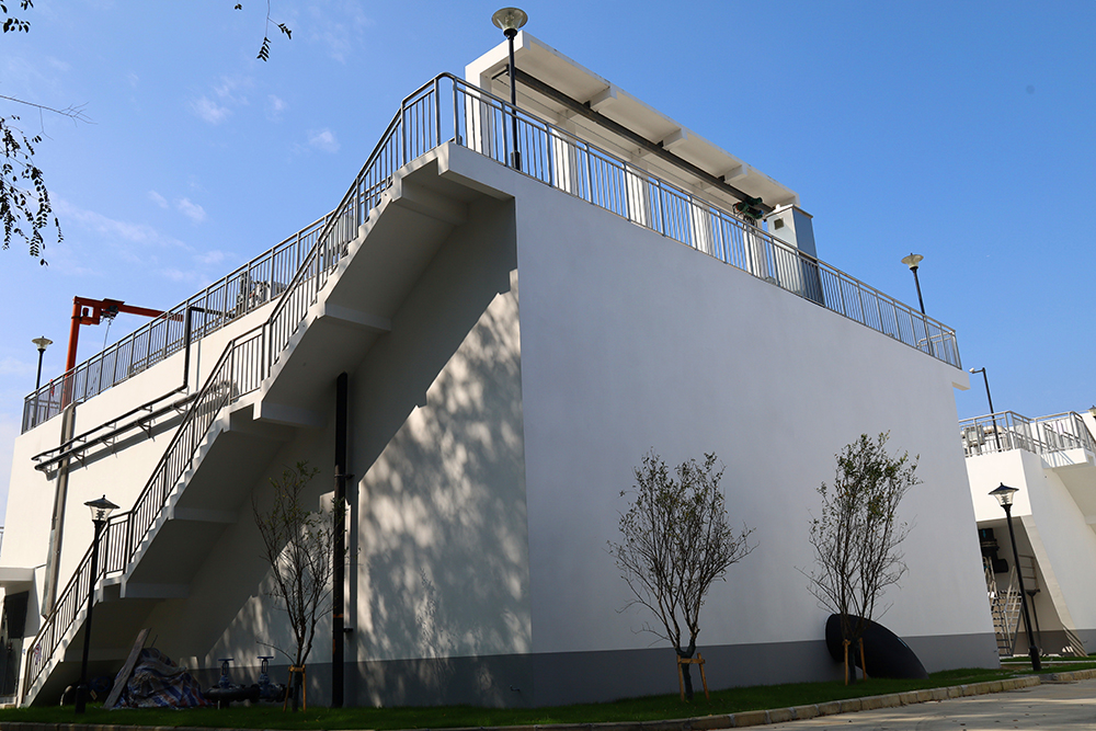 原厂区地下管线复杂,大部分管线图纸缺失,为确保新建过程中原有生产线正常运行,项目施工仔细探挖管道,根据管道材质与位置判断用途,重新梳理旧有管道系统;旧池地上部分高度超过15m,且距周边生产建筑物较近,项目部精细化施工,精确控制拆除物的大小和掉落方向,提前做好安全防护措施,快速安全地完成结构拆除;两组新建生化组合池上部结构建筑模板工程施工,高度超过8m、结构跨度大,属于高大支模架工程,为确保模板结构的稳定,底部采用对拉镙杆加密;为杜绝池壁预留施工缝渗水问题,池壁和池面混凝土一次浇筑成型,施工人员披星戴月、栉风沐雨、紧盯现场,确保每个环节、工序达到高标准。