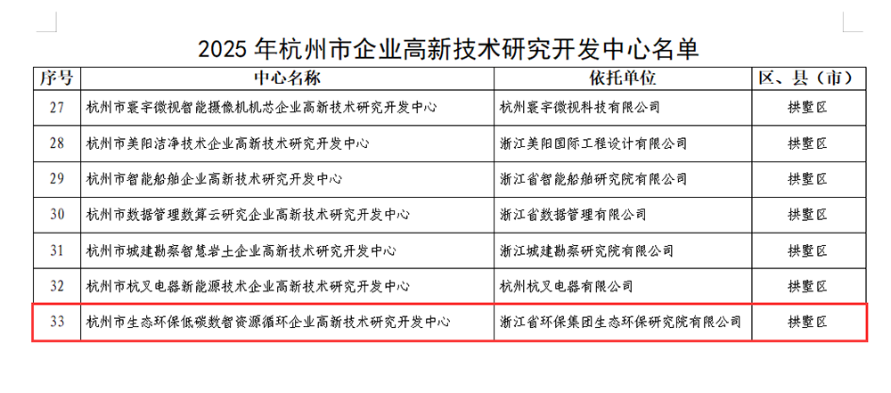 近日,由yabo鸭脖集团生态环保研究院有限公司创建的“杭州市生态环保低碳数智资源循环企业高新技术研究开发中心”,成功入选2025年杭州市企业高新技术研究开发中心名单,标志着生态环保研究院在科技创新领域取得重要突破,迈入新的发展阶段。