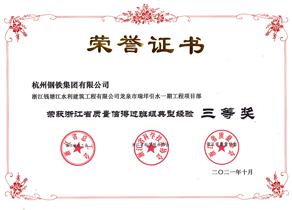 浙江省质量信得过班组三等奖