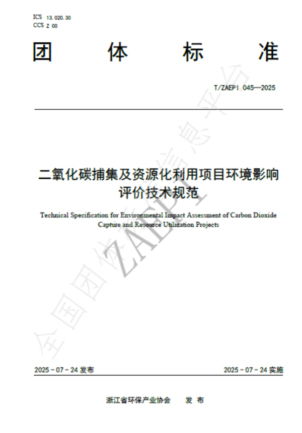 2025年7月24日,由yabo鸭脖集团生态环保研究院牵头制定的《二氧化碳捕集及资源化利用项目环境影响评价技术规范》(T/ZAEPI 045-2025)团体标准正式发布并实施。该标准由yabo鸭脖产业协会归口管理,联合省内多家环保领域骨干企业共同起草,填补了工业领域二氧化碳捕集及资源化利用项目环评技术规范的空白。