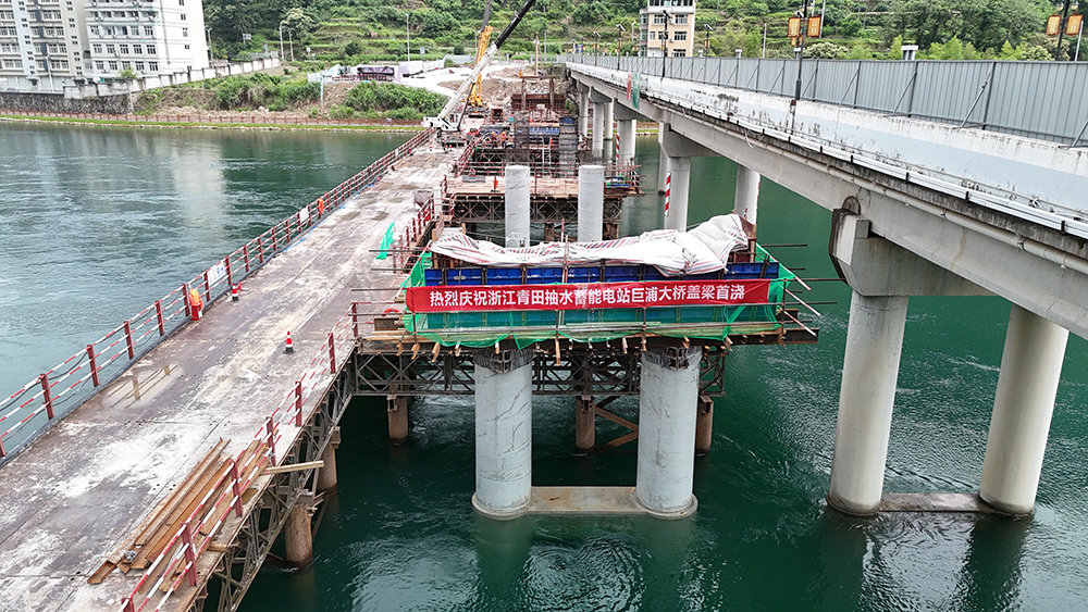 青田抽蓄巨浦大桥拼宽工程盖梁首件浇筑完成